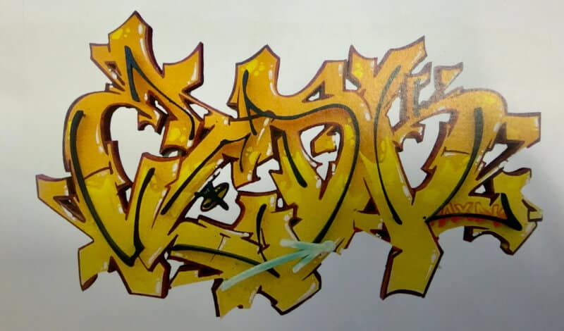 Ce mélange de techniques permet de recréer le volume et l’énergie du graffiti mural, tout en le transposant sur un support durable.
